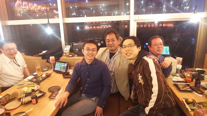 久しぶりの上京ということで昔からの将棋仲間達とも会うことに。到着した日の夜、宴会会場に着くと見慣れた懐かしい顔ぶれが。飲み物と食事はもちろんですが将棋盤もしっかりテーブルに並んでいます、さすが将棋仲間の集い(笑)。